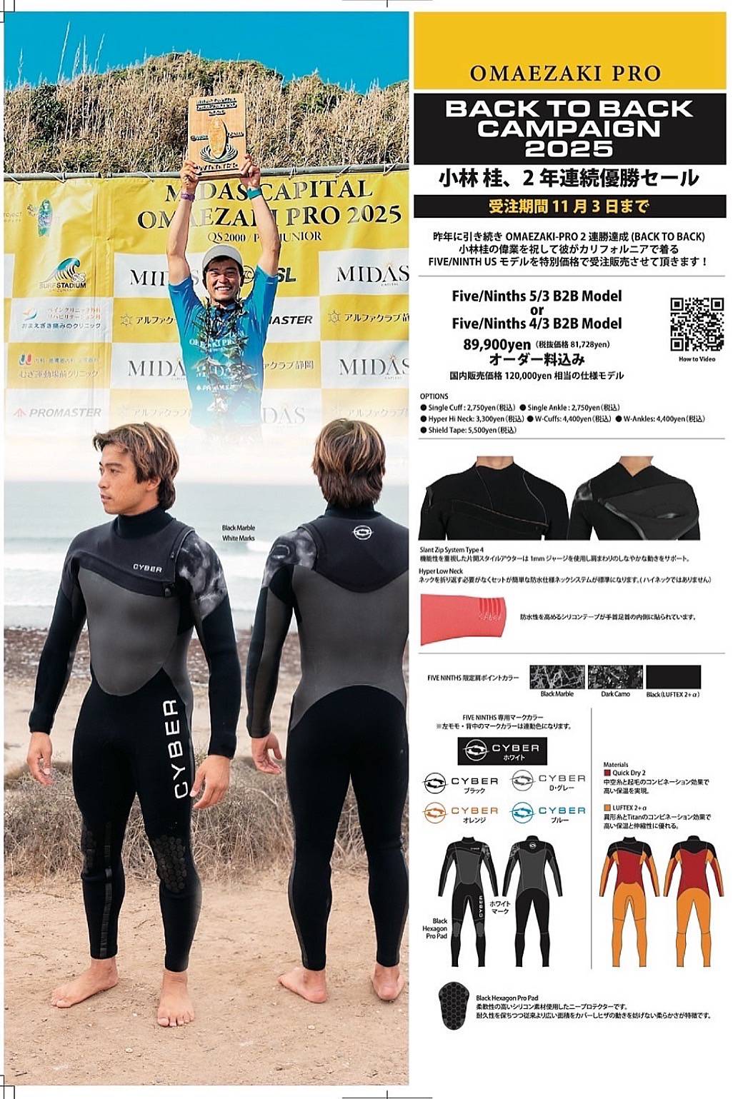 SHOP NEWS OMAEZAKI PRO BACK TO BACK CAMPAIGN 2025開催! 2025年9月20日 GAEA 小林桂、2年連続優勝セール受注期間11月3日迄開催します。 Facebook post